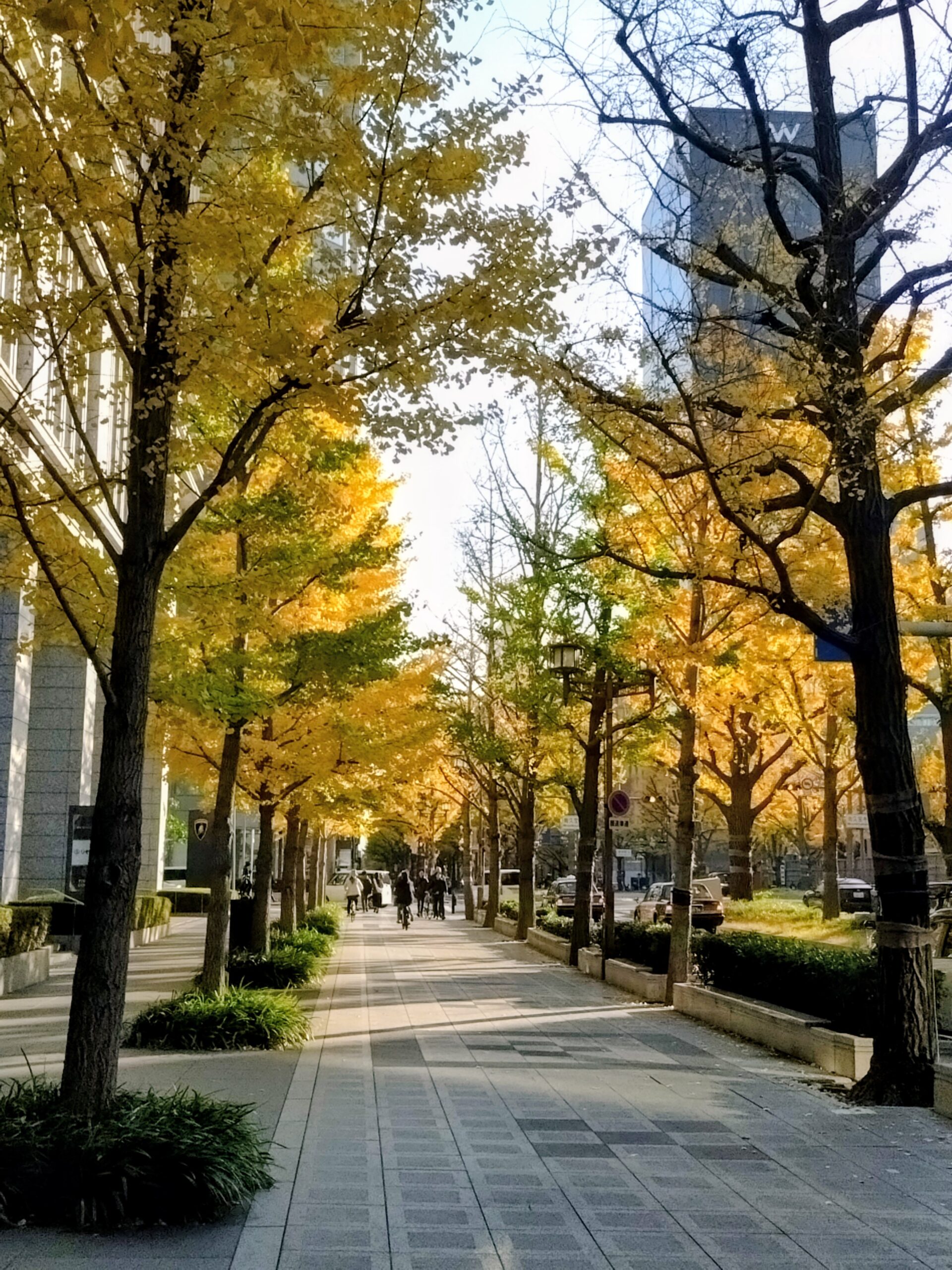 帰り本町に用事があって立ち寄るとイチョウがとても綺麗で夜はライトも付くようでした!